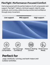 •  FlexTight Collection Four-Way Stretch Fabric – Soft, breathable, and sweat-wicking with medium compression for all-day comfort.